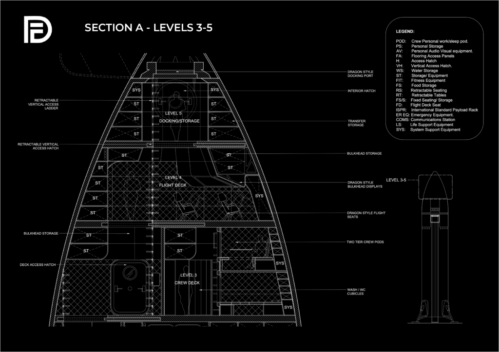 The following design is an unofficial interior concept designed by Design Freedom Space using SpaceX's Starship volume.