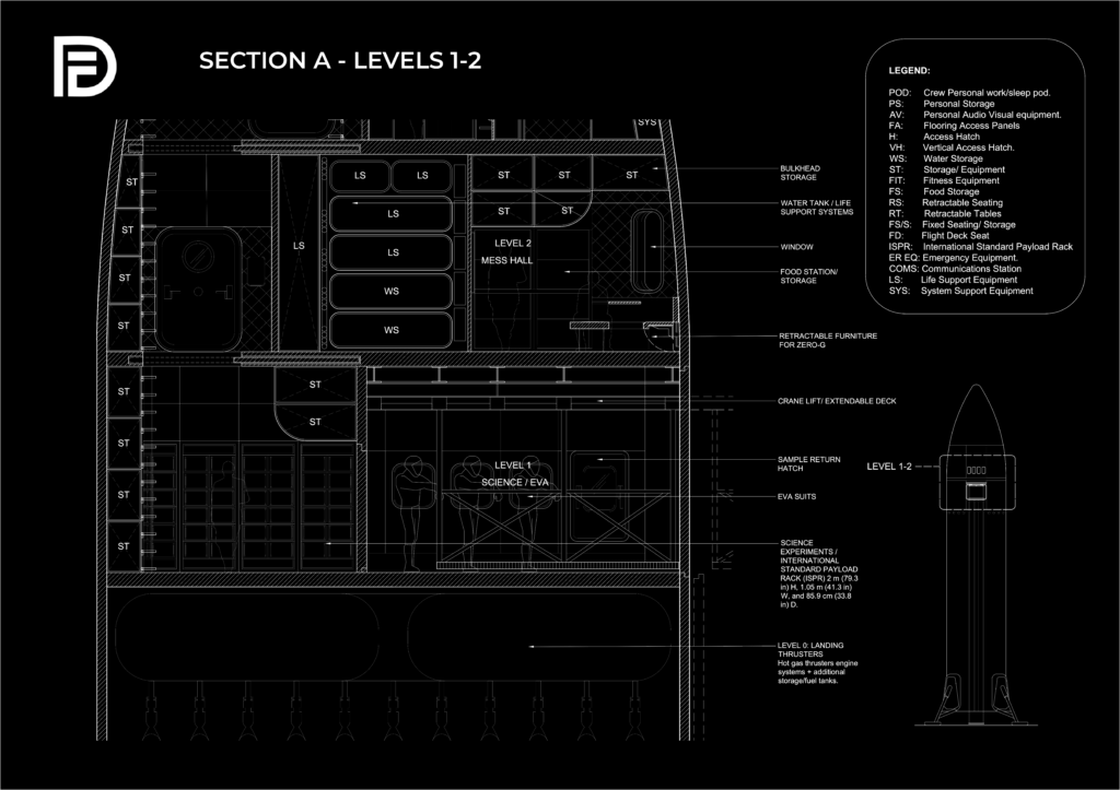 Our designs are intended to allow people interested in the Starship program to visualise the possible configurations in space and better understand how a crew could live, work, and socialise in confined spaces and how they could design storage/supply capability for long and short-duration missions.